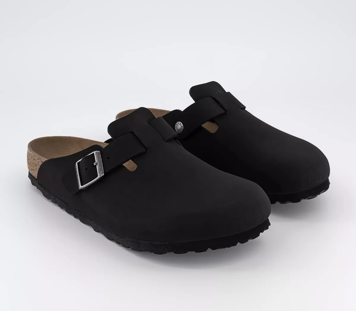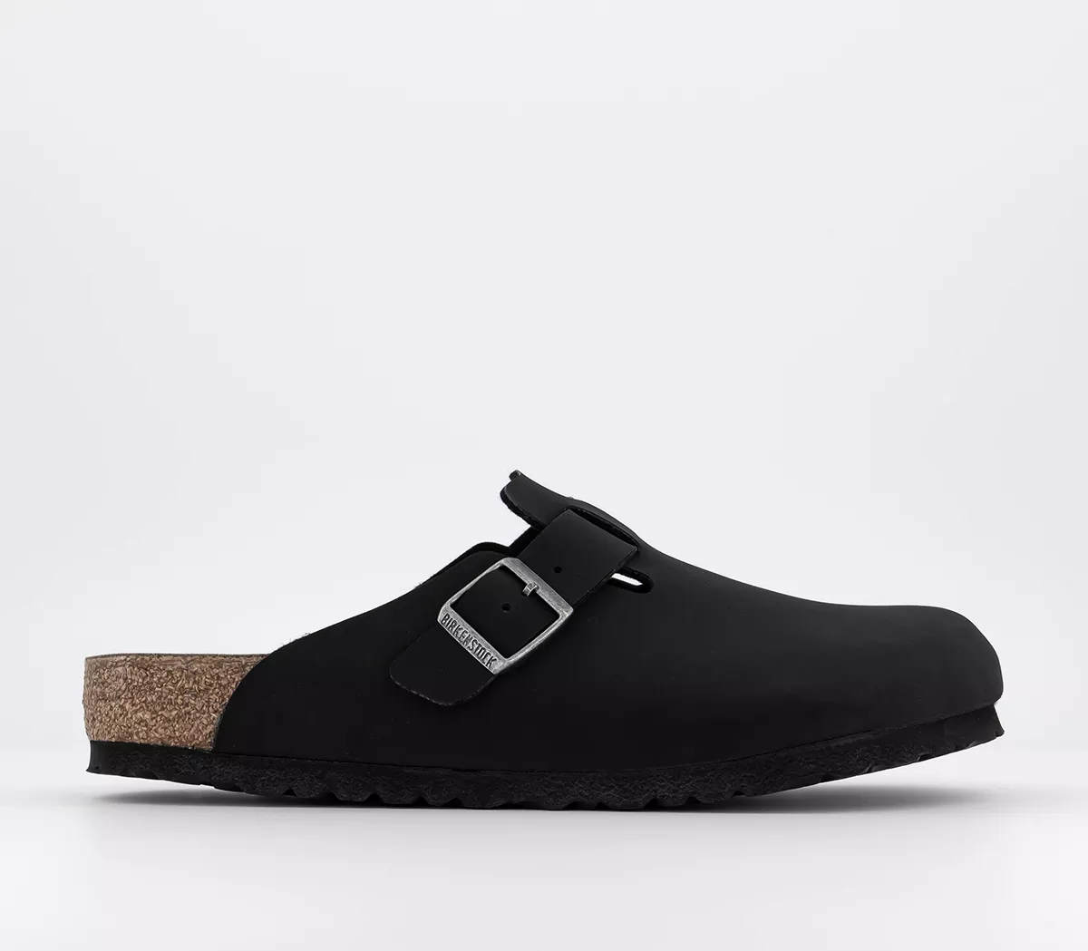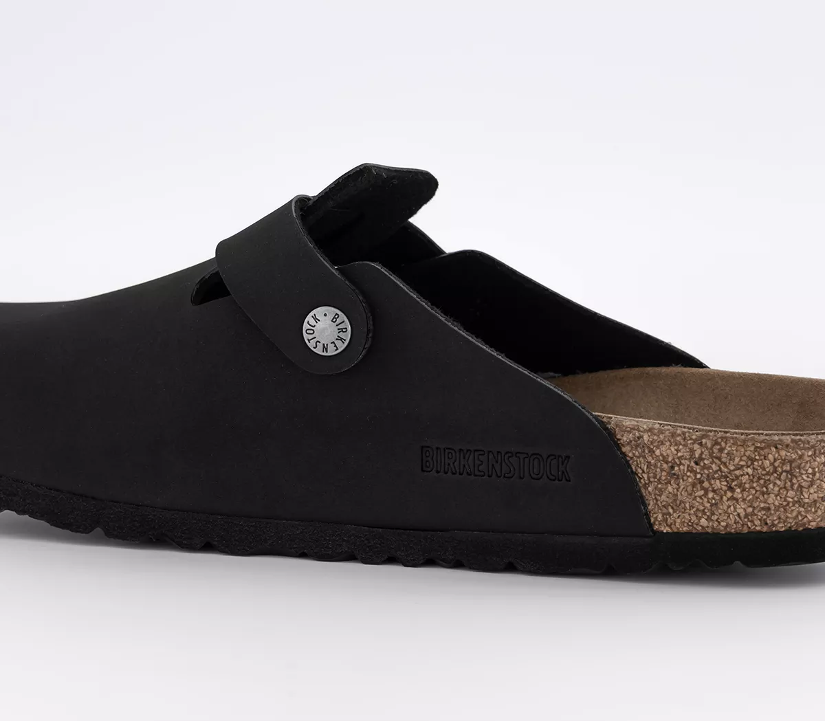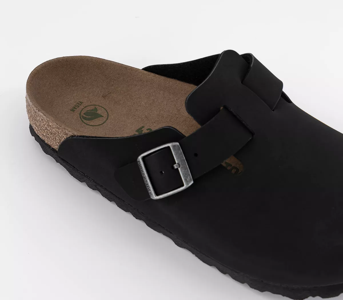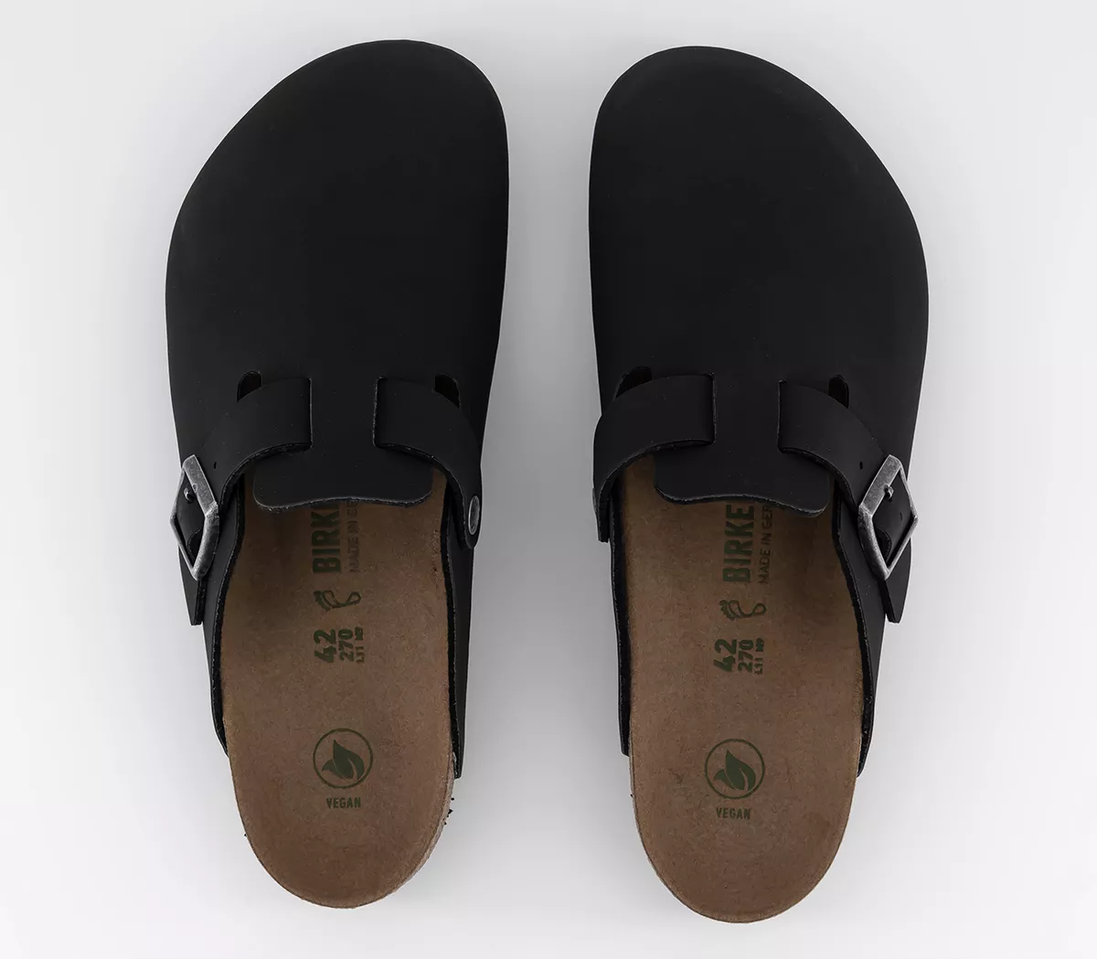 The classic Boston clog by BIRKENSTOCK, designed to wear all year round. The adaptable strap and strong metal buckle make these clogs comfortable for all foot types. This pair has upgraded vegan friendly materials. With the footbed made of cork and upper made with Birko-Flor® nubuck, which is an impeccable counterfeit for authentic nubuck.