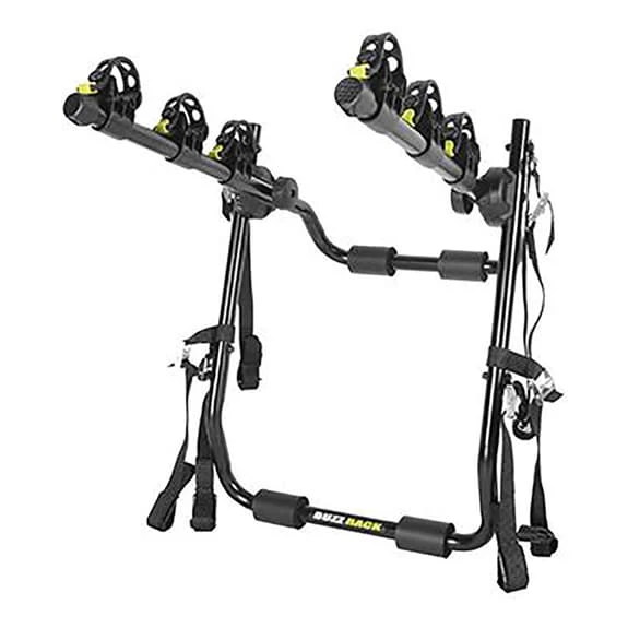 The Buzz Rack Mozzquito 3 Bicycles Bike Rack is a simple transport system that easily mounts to the back door and holds up to three bikes.