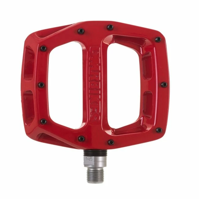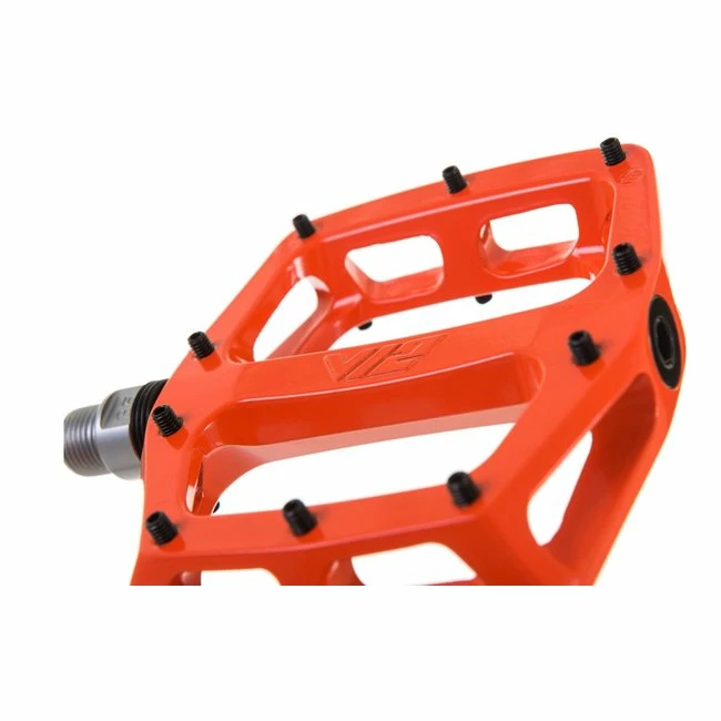 These V12 mtb flat pedals run on fully sealed bearings and a cro-mo axle. All pins on the pedal are replaceable and tuneable for preferred grip.