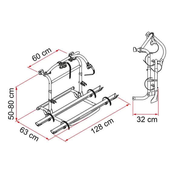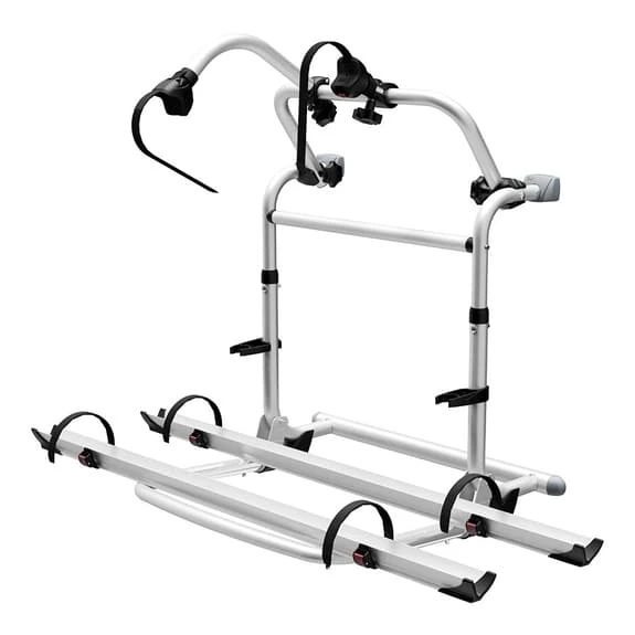The Fiamma Pro M bike rack for 2/4 bicycles is designed to be fitted to the rear wall of the motorhome. The structure is height adjustable and the Kit Support Bar comes with through bolts. As standard, up to 2 bikes can be loaded, if an extension is used, up to 4 bikes can be loaded.