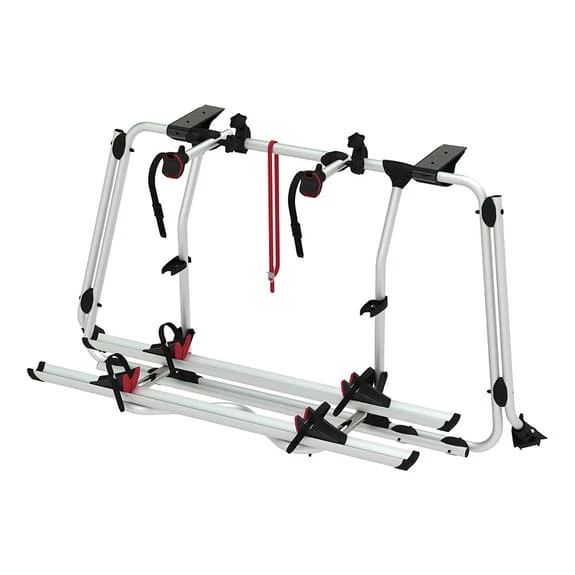 The Fiamma Volkswagen T6 Pro bike rack for 2/4 bikes is specifically designed for the Volkswagen T6 and T6.1 models. Its shape allows the lower part of the rear door to be left free. The rear door can be opened when the bike carrier is mounted without bicycles. As standard, up to 2 bikes can be loaded, if an extension is used, up to 4 bikes can be loaded.
