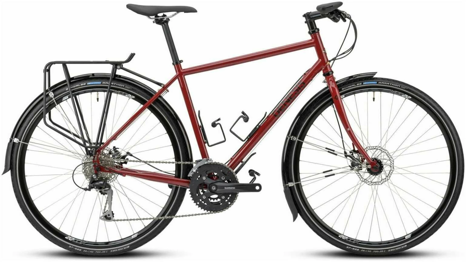 volume, puncture resistant Schwalbe Marathon tyres, tough 36H wheelset, powerful, controlled disc brakes, Tubus