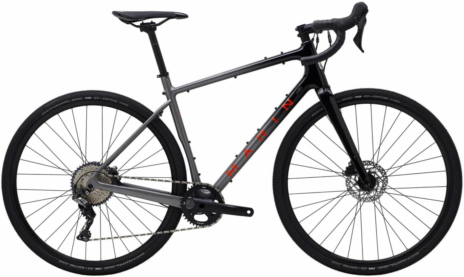 - Forks: Marin Full Carbon with Tapered Steerer, 12mm Thru-Axle, Flat-Mount Disc, Fender Eyelets