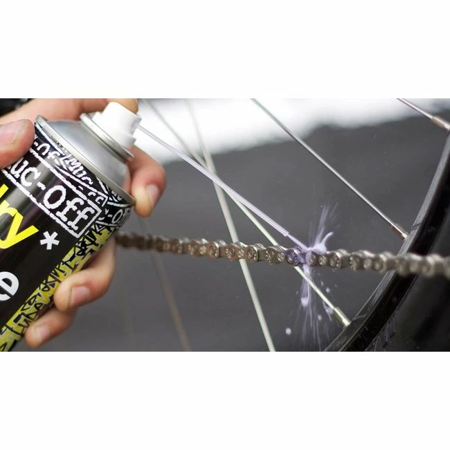 Muc-Off Dry Chain Lube is formulated to hold up to the extreme pressures that are applied to modern drive chains. This highly versatile, dry weather chain lube has superior penetrative qualities that ensure every part of the chain link is completely lubricated. Our advanced ‘Dry Formula’ creates a clean, durable and protective chain wax layer that inhibits rust development and chain link corrosion. The formula creates exceptionally low surface friction to provide incredible drive chain efficiency without attracting contaminants. It’s clean, and it’s easy to use!
