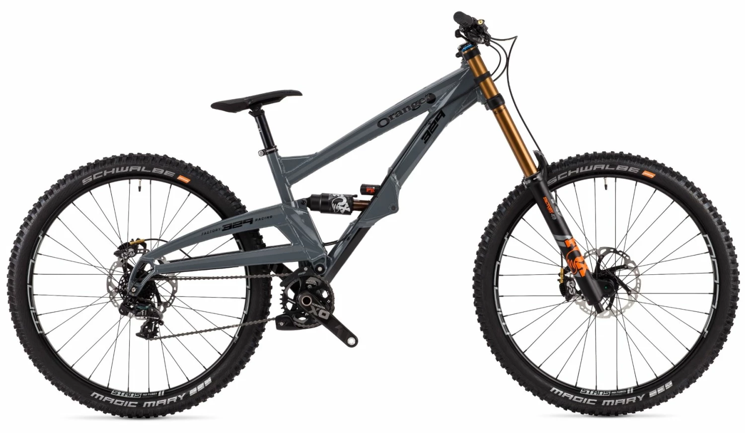 The 329 Factory features a 250mm Fox Float X2 Factory Kashima shock allowing 200mm of ultra-plush rear travel, matched with a 200mm Fox 40 Factory Kashima fork to track the harshest lines on the mountainside. The downhill specific SRAM XO1 DH 7-speed drivetrain is compact with fundamental DH gearing (11-24T), while the sharp Shimano Saint 4-pot brakes paired with grippy Magic Mary SuperGravity tyres let you hold your speed till the very last second. Stans Flow MKIII / Hope Pro4 wheels wrap up the chassis nicely with standard 12×150 / 20x110mm axles, and a Renthal FatBar Carbon V2 / Integra Stem cockpit adds a little extra spice to the front end.