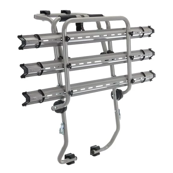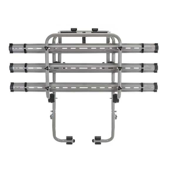 The Peruzzo Padova Steel rear mounted rack for 3 bikes allows you to transport them safely thanks to its sturdy elements. It is made of steel to provide strength and resistance, and its anchoring system is made through the wheel thanks to the strong straps with proven hooks to hold the weight without problems. The lower straps have an anti-bounce system, which means extra safety against potholes and sudden movements when moving.