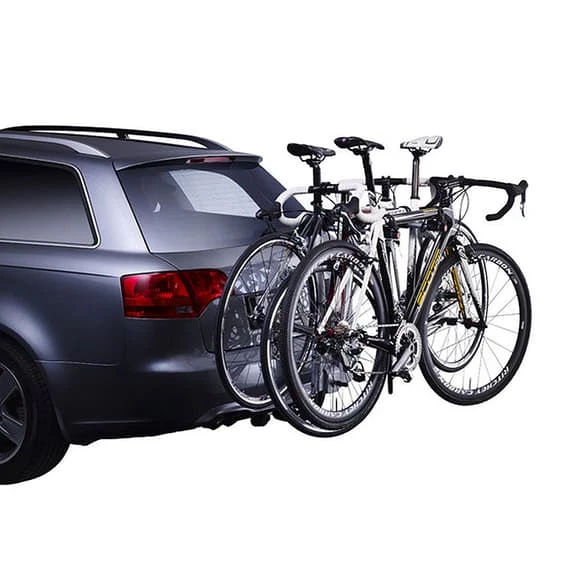Bike carrier Thule HangOn 974 3 bikes that fits most towballs and that folds flat for easy storage, compact enough to store it in the trunk of the car. The reflective on the covers provide greater safety in transit. Straps are included to secure the bicycles. The rubber-coated clamps firmly hold the bicycles in place and protect the frame from scratches and marks.